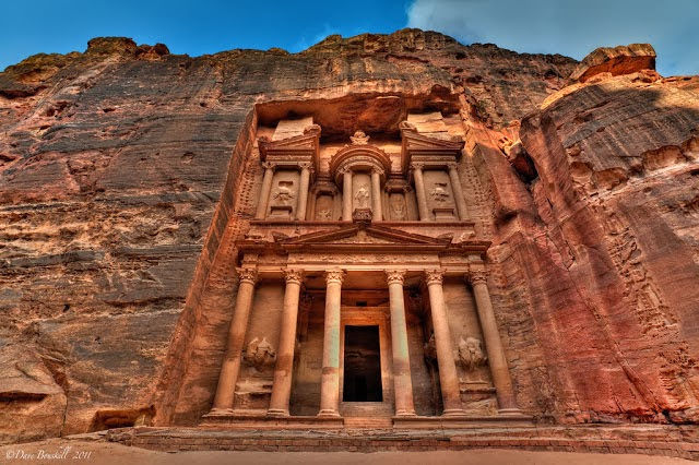 Situada na Jordânia , no Oriente Médio, as Ruínas de Petra representam uma cidade histórica e arqueológica que foi construída cerca de 300 a.C., sendo esculpida nos penhascos de arenito núbio. As ruínas de Petra estão incluídas na categoria de património mundial da UNESCO, desde 1985. O local representa o que restou da ocupação da diversas civilizações (edomitas , nabateus , árabes , romanos , bizantinos) que floresceram durante a antiguidade. Foi parcialmente destruída por terremotos que ocorreu na região cerca de 550 d.C..